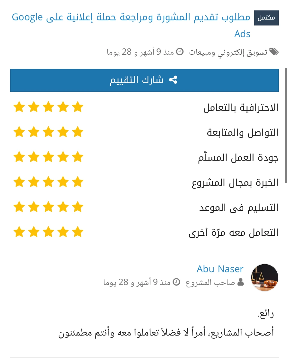 أراء عملائنا على منصات العمل الحر المختلفة